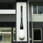この熊野筆の巨大レリーフです。サンプルの筆をもとに発泡スチロールで原型から製作しました。毛並の部分を樹脂でテクスチャー付けしたり、短い方のメイクブラシの金属部分をメッキ塗装するなど細部の素材の違いがでるように表現しました。