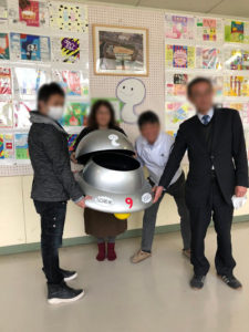 豊中第九中学校の方から創立50周年記念ということで卒業式に使うタイムカプセルを作ってほしいとのご依頼があり、生徒さんの描かれたイラストを元にUFO型のタイムカプセルを製作しました。