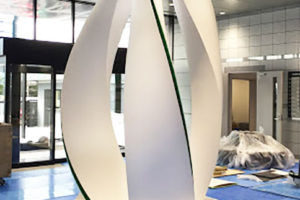 砂防ダムの模型は、実際のダムの建設図面から模型にした時のパーツのサイズなどを出し、100枚以上の図面や写真資料を照らし合わせ、足りない情報は現地調査を行い製作を進めていきました。屋外に設置されるということでメンテナンス性も配慮して仕上げました。ダムの形はもちろん、塗装も建物にはエージング塗装を施してあったり、ダムの壁にも模様があったりと細かいところもしっかり表現してあるんですよ!