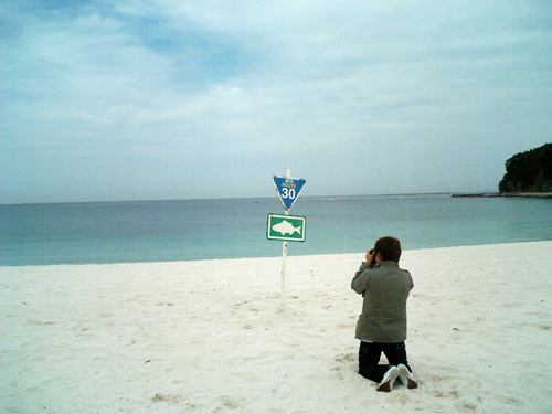 劇団のポスターのための写真撮影に和歌山の海まで同行し、当工房が製作した看板をチラシに掲載していただきました。 !
