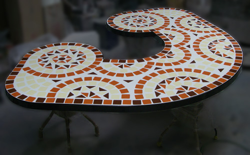 モザイクタイル風テーブル 【中】500mm~2000mm 2017.12.312025.11.14 TV番組のセットとして使うテーブル。モザイクタイル風の模様を塗装しました。細かい塗り分けのマスキングがあり、意外に時間がかかりました。ウレタン塗装。 作品名 モザイクタイル風テーブル 設置場所 TV局 制作時期 2009年 製作期間 6日くらい ご相談・お見積りは無料です。まずはお気軽にお問い合わせください。