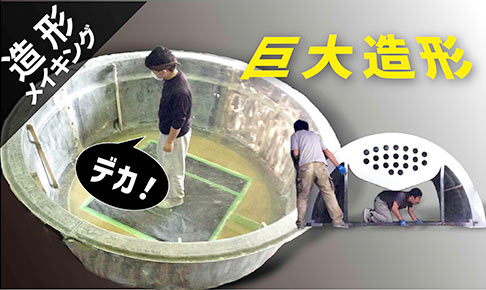 2m~10m以上の大型立体造形も対応可能。巨大モニュメントや屋外設置の大型模型、企業研修施設の演出装置、ダム模型など、大規模な造形物は信頼できる協力会社と連携して製作します。FRPの特性を活かし、軽量・高耐久・精密な巨大造形を実現しています。