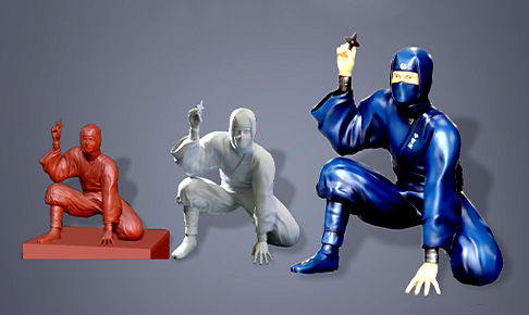 お客様のイラストや3Dデータをもとに、3Dモデリング・3Dプリンターで立体造形を制作。FRP補強や塗装にも対応し、屋外設置や等身大オブジェ、SNSで話題のキャラクター制作など幅広くご相談いただけます。